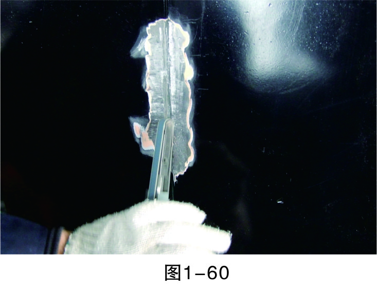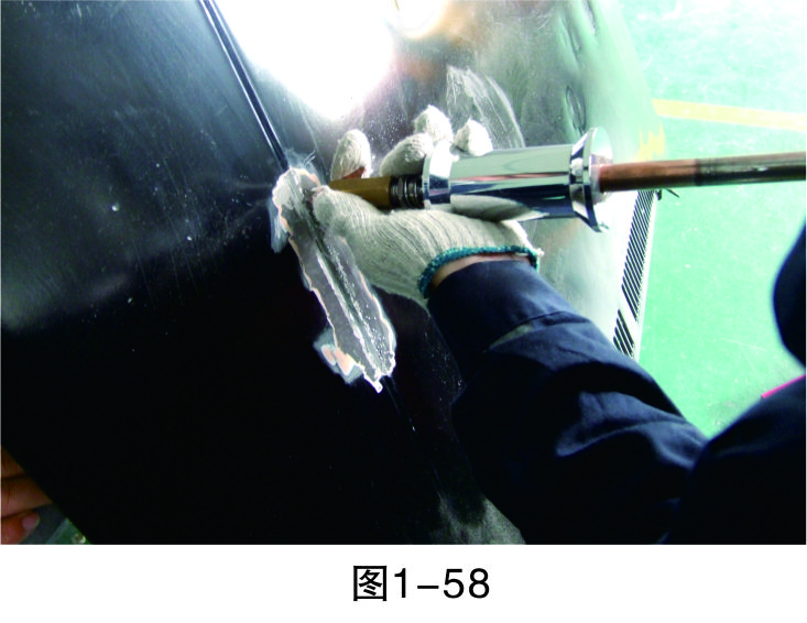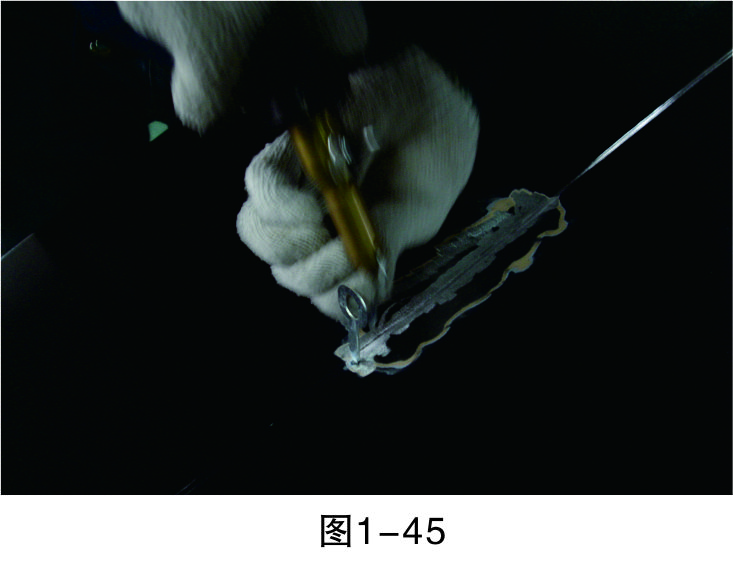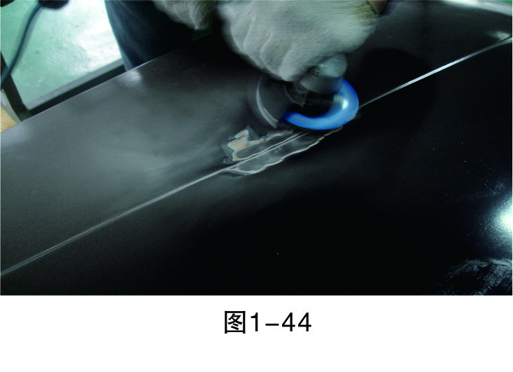 步驟3(除漆):打磨漆層,至板件金屬裸露后進行清潔,然后再進行鈑金作業,如圖1-44所示。
