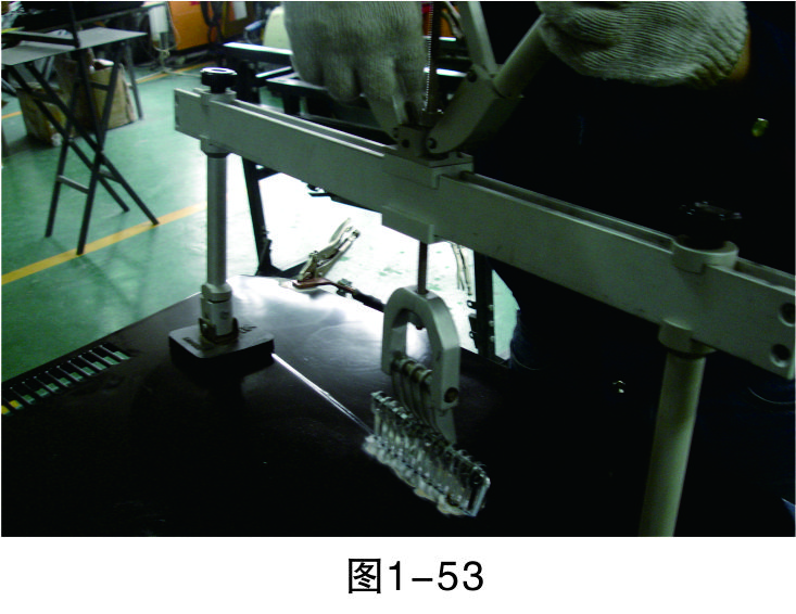 步驟12(松開螺母):兩手輕輕拉伸手柄,使螺母與連桿之間產生一定空位,慢慢松開上面的螺母,如圖1-53所示。
