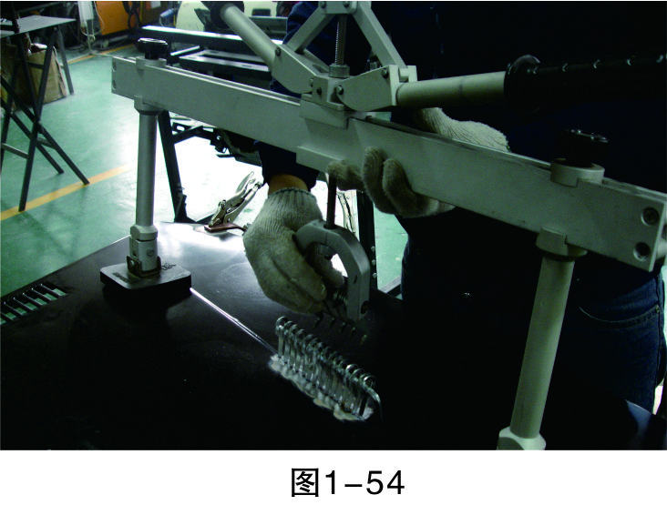 步驟4(焊介子):焊接介子,利用鈑金修復機把介子焊接到待修板件上,方便之后的拉拔作業,如圖1-45所示。