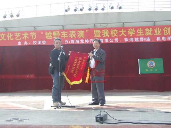 開幕式上龍神彭總發表慷慨激昂的講話,回顧了龍神公司與廣科院三年的良好合作,并表示將帶動所在行業和企業為大學生指引和提供更多的就業創業機會,共同發揚越野精神、建設汽車文化,使之成為華南地區甚至全國范圍的高職學生精神文明和文化建設的亮點。隨后宣布了大學生就業創業基地建設和澳門四驅會成立啟動儀式,龍神公司和澳門四驅會分別向廣科院贈送錦旗,多采多藝的大學生文藝匯演給會場增添了眩麗的色彩,在越野酷車展示中,車主們自信的介紹著自己的愛車,車模們也對車主的酷車贊嘆不已!交流會上,大學生們爭先恐后與越野車主們交淡著汽車改裝的心得,從中更加深入的了解四驅越野車的獨特改裝性能,在校園里到處都充斥著關于越野車改裝的氛圍。