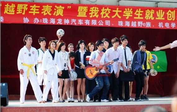 12月5日龍神公司與廣東科學技術職業學院聯合“越野e族”舉辦“第十七屆大學生文化藝術節 越野車文化交流表演暨大學生就業創業基地建設啟動儀式在廣科院校園隆重召開。此次大學生文化藝術節由廣科院校團委主辦,龍神公司、越野e族協辦,出席此次活動的分別來自珠海,江門,中山,順德,澳門的越野e族朋友共八十多輛高級越野車參與;在緊張刺激的汽車轟鳴聲中拉開了序幕。