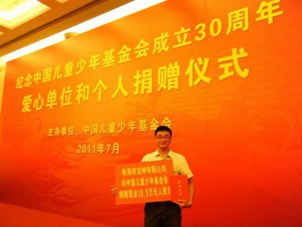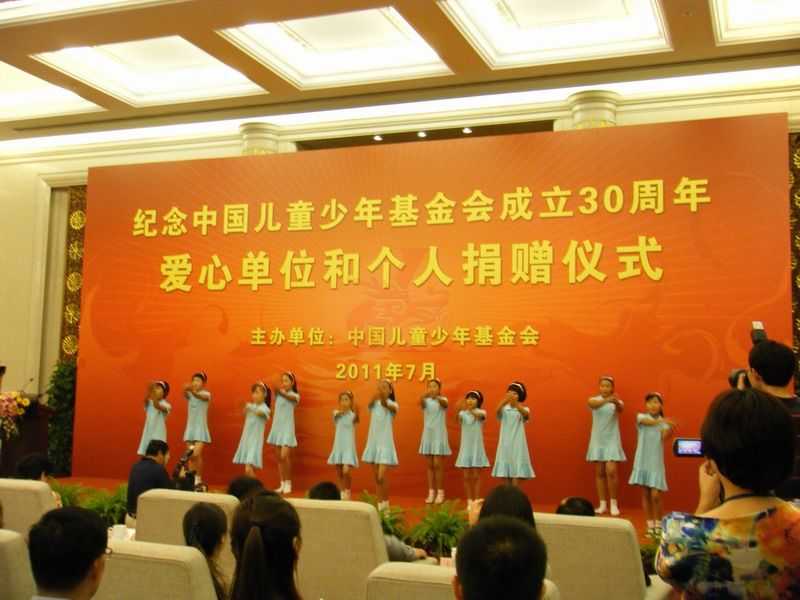2011年7月5日,紀(jì)念中國(guó)兒童少年基金會(huì)成立30周年愛(ài)心單位和個(gè)人捐贈(zèng)儀式在北京人民大會(huì)堂舉行。全國(guó)人大常委會(huì)副委員長(zhǎng)陳至立出席捐贈(zèng)儀式,為愛(ài)心單位和個(gè)人頒發(fā)捐贈(zèng)證書(shū)并講話。