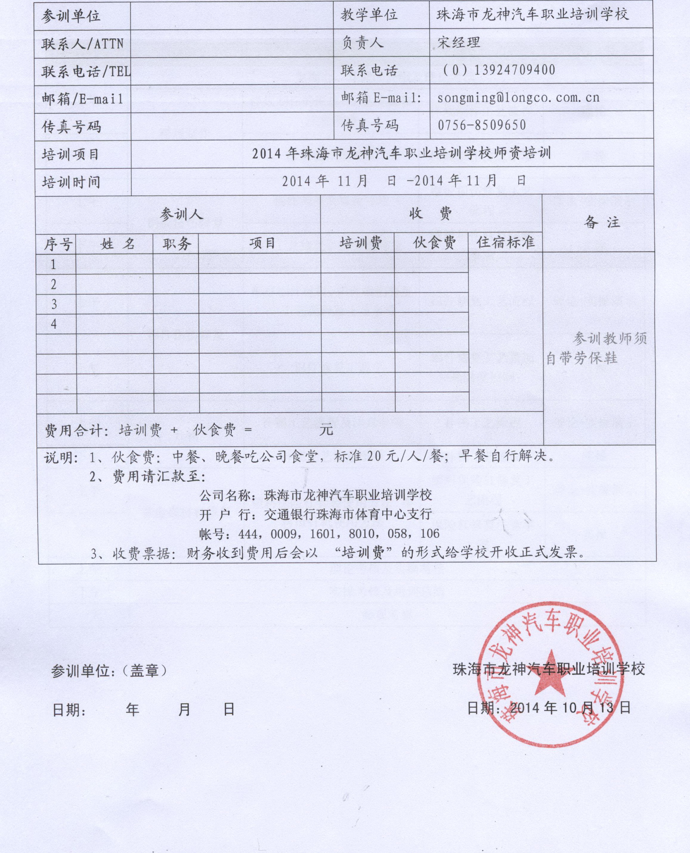 備注:1、參訓學校需填寫報名回執表,并蓋章。