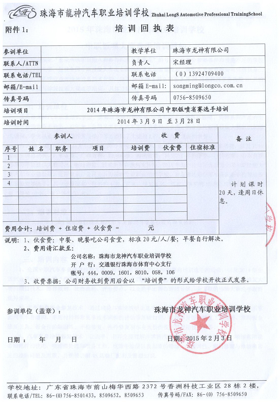附件1: 培 訓 回 執 表