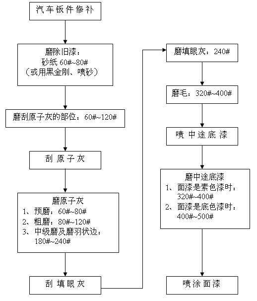 汽車修補干磨程序及砂紙的選擇 備注: 1、除舊漆時采用黑金剛配除漆除銹機能夠快速地除去平面、狹縫及凹凸不平表面的舊漆與銹漬;采用噴砂槍噴砂還可以很快地去除某些孔隙、縫隙或手都很難伸進去的部位的舊漆與銹斑; 2、在磨填眼灰、中途底漆和尤其有邊角位、弧度位的表面時配打磨緩沖墊(置于圓盤砂紙和托盤之間)能夠使打磨作業更加順暢,并能獲得規則的表面質量。 2007-08-25 12489