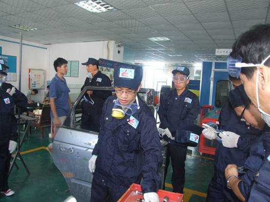 全國交職院校鈑噴師資高級培訓班實況 炎炎的八月三伏天,為期7天的全國交職院校鈑噴師資高級培訓也隨之火熱開班。此次高級班除了有以往鈑金加噴漆知識的組合課程外,還特意邀請來自上海交通職業技術學院,且有三十多年專業教學經驗的資深汽車技術和營銷培訓師印鎮元教師,為主講事故車定損、舊機動手車評估等更深入的知識傳授。直接與專業老師面對面心得交流,培訓的氛圍再次火熱。