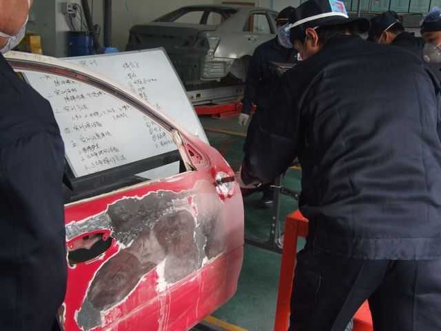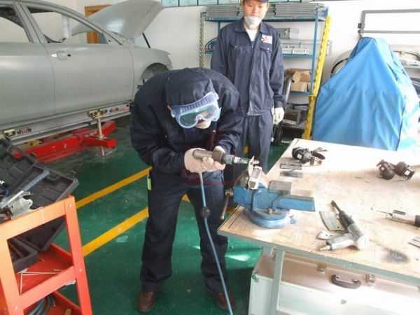 鈑金組朱老師指導正確使用鈑金整形架和工具修復車身