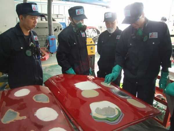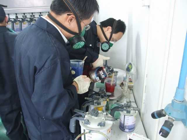 老師們正在進行調漆